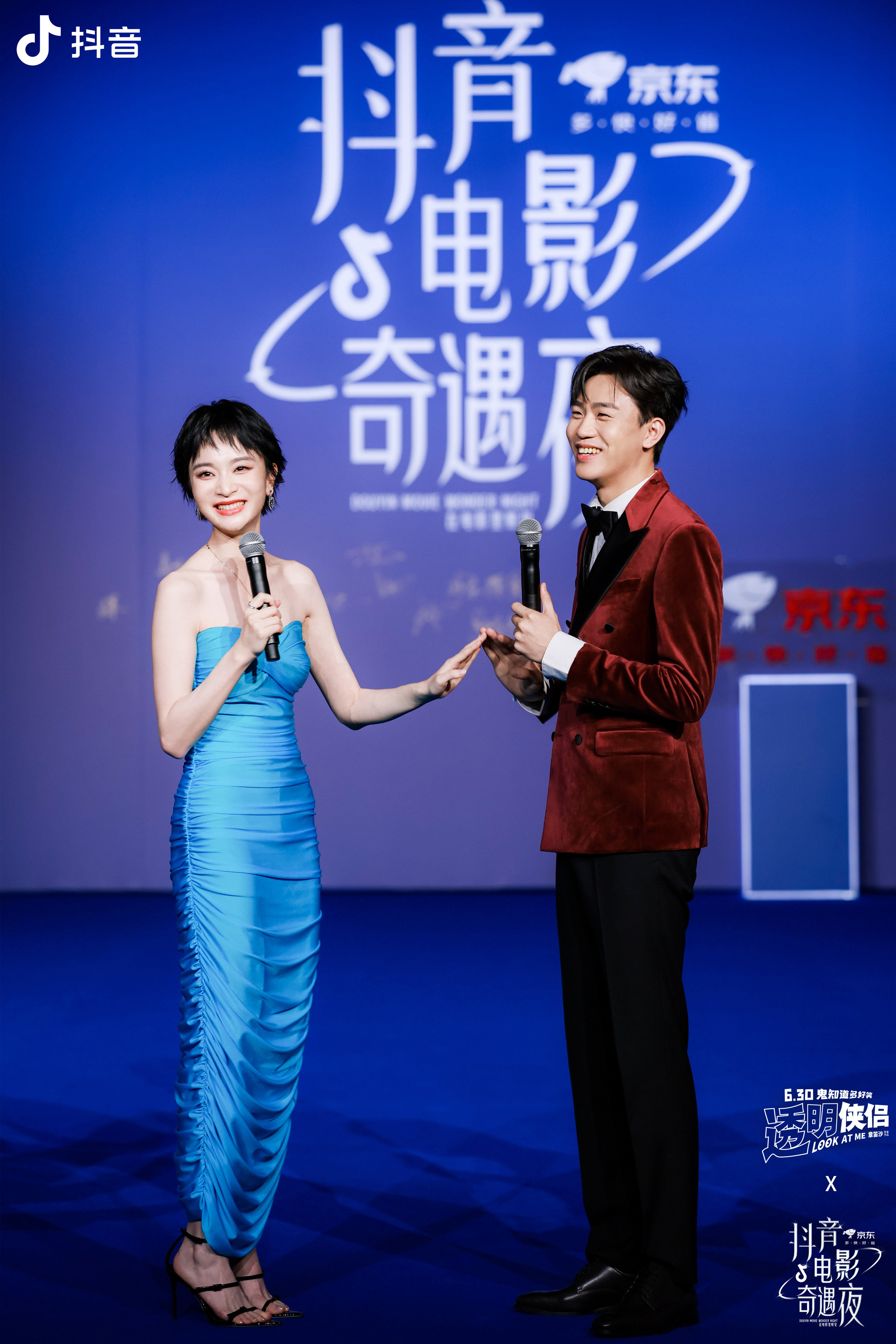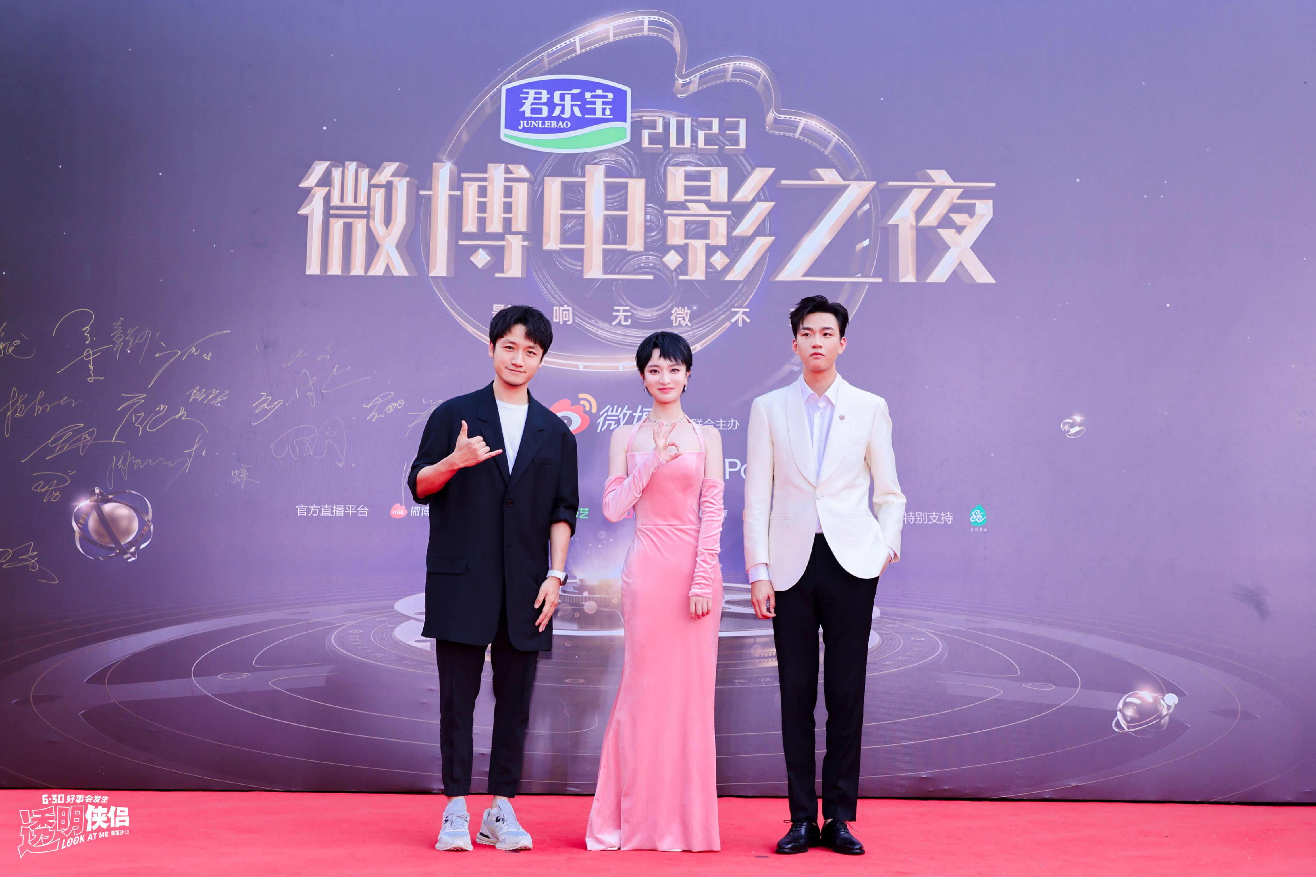 电影《透明侠侣》讲述了职场“小透明”黄小鹿与因一场意外变成“透明人”后仅她一人可见的吴聪,在互相帮助对方寻找自我的过程逐渐卸下心防,互相拯救的故事,此次连续三天亮相电影节活动也是“小透明”们与电影盛会的再次“触电”。抖音电影奇遇夜上,王皓与史策以吸睛的红蓝搭配合体亮相“蓝毯”,并在当晚活动中首唱电影《透明侠侣》“转运曲”《好事会发生》,默契搭档用真诚表演为观众送去“永远有好事发生”的祝福。在上影节红毯,导演章笛沙、主演史策、王皓礼服穿搭酷飒优雅,十分吸睛,合影环节,三位主创一起比出“6”“3”“0”手势,也令人十分期待即将在6月30日上映的电影《透明侠侣》到底会带来怎样的惊喜。次日,三位主创再度并肩同行奔赴微博电影之夜盛典,《透明侠侣》斩获微博之夜“年度期待电影”奖项,史策和王皓获得微博之夜“年度新锐演员”奖项,收获观众与平台认可。
