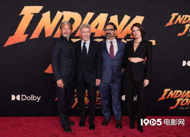 美国洛杉矶时间6月14日,电影《夺宝奇兵5:命运转盘》举行首映式。哈里森·福特携妻子与菲比·沃勒-布里奇、“麦子叔”麦斯·米科尔森共同出席。