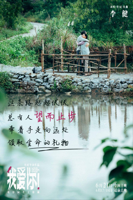 6月15日,电影《我爱你!》释出由李健作词作曲并演唱的同名主题曲MV,并发布一款海报。伴随舒缓的旋律和细腻的歌词,李健悠远纯净的嗓音将片中两对爱人常为戒(倪大红饰)与李慧如(惠英红饰)、谢定山(梁家辉饰)与赵欢欣(叶童饰)各自的爱情悲喜与面临的现实困境娓娓道来。“当一切归于沉寂,你枕着一生的回忆,是谁在你的耳畔,说出那三个字”,简单的三个字“我爱你”,是他们无须多言的彼此相望,也是陪伴到老的一生凝结。