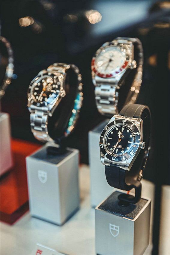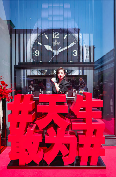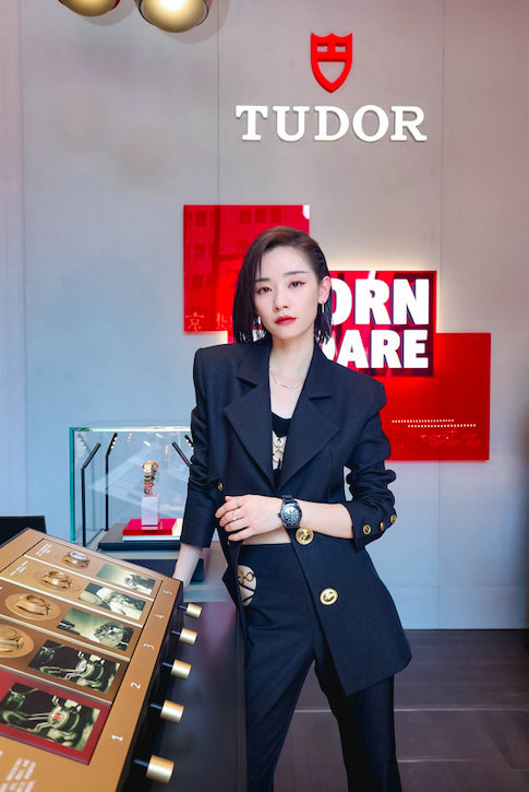 艺人刘雅瑟在店内互动区展示帝舵表碧湾系列