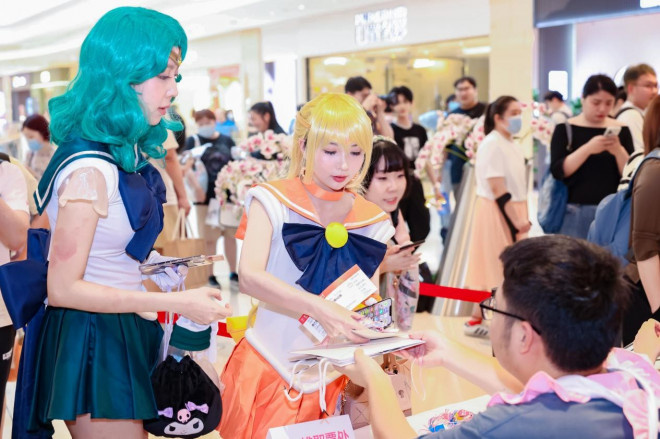 《光之美少女》同样也是日本国民级动画IP。动画制作人神木优特意携原画作品、吉尼斯世界纪录奖牌来到现场,与大会员观众进行映后互动。这也是她第一次来到中国,与中国的粉丝们进行近距离交流。不少观众带着IP周边产品,如《美少女战士》的变身棒、《数码宝贝》的进化器“神圣计划”、各种漫画玩偶手办等等前来观影。还有观众特意Cos成自己喜爱的角色形象,与同好们现场交流,实现了一次极富仪式感的线下观影。