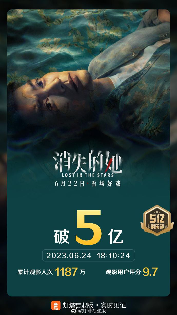 1.《消失的她》5.01亿(累计票房5.37亿,影片正在上映中)