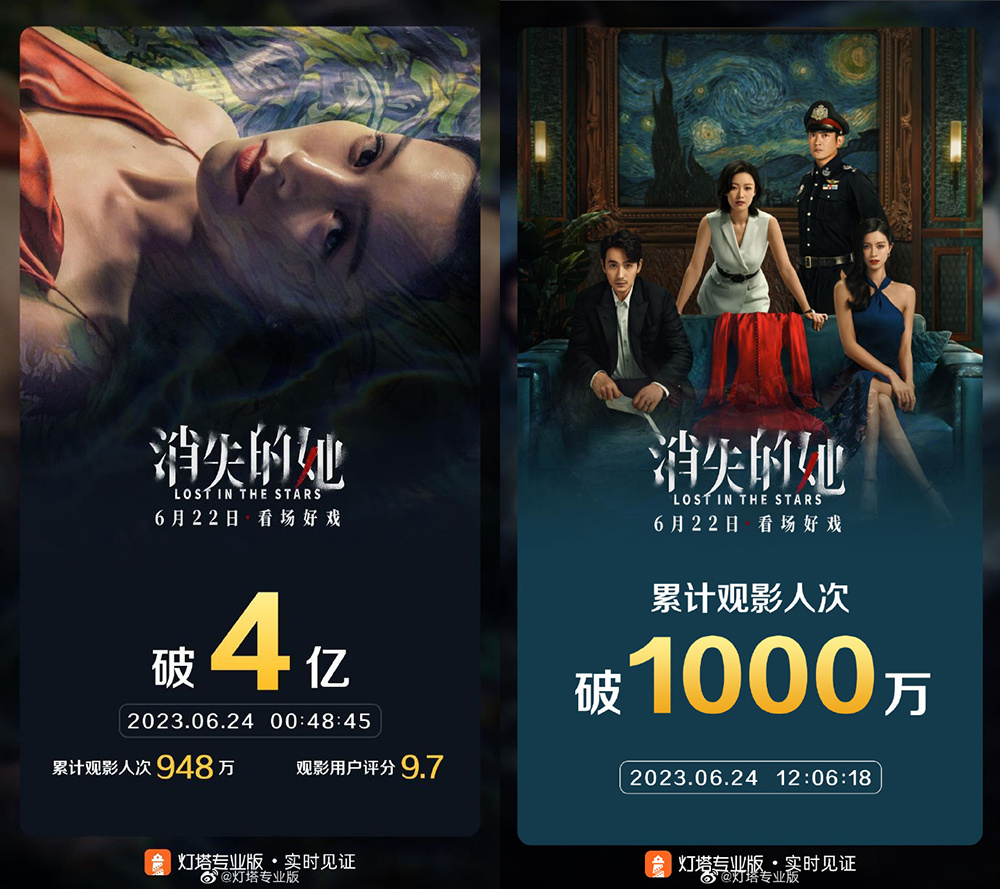 截至发稿,《消失的她》累计观影人次突破1000万。该片也官宣海外定档日期,7月6日登陆澳大利亚,7月7日北美上映,7月13日新西兰上映。