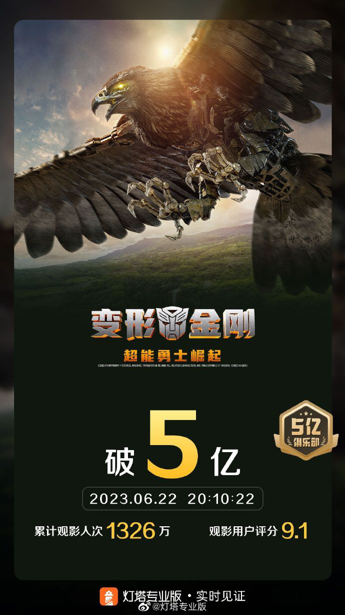 6月9日上映的《变形金刚:超能勇士崛起》在端午小长假继续发力,凭借档期6792万的票房成绩,暂列2023端午档票房第三位。已经上映16天的该片累计票房达到5.4亿,目前该片也占据着2023暑期档票房的头把交椅。