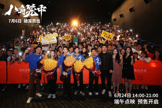 《八角笼中》讲述了一个普通人带领一群无人照料的孩子冲破命运重围、寻找人生出路的故事。6月22日至24日端午期间,《八角笼中》在全国多城开启限时超前点映,收获了众多好评,猫眼点映评分9.6分。电影中的故事深深地打动了观众:“《八角笼中》超级好看,赚了我不少眼泪,入股不亏”,“好到无话可说,王宝强导演的功力大增,故事的完成度,节奏、情感的铺垫和矛盾冲突都恰到好处,交替沉浸在感动和热血之中。”更有众多观众在映后成为“自来水”自发安利:“《八角笼中》真的很好看,非常值得一看的故事片,真诚克制,没有故意煽情,不是因为热爱,只因为朝着那个方向有饭吃,有地方睡,王宝强拍了一部很好看的故事片”,“故事发展一波三折,高潮迭起,出乎意料又在情理之中,很多场面让人印象深刻,比如前半部分星空下的停驻与玩耍,脚下是沙堆也是松软但缠脚的苦难,头顶遥远但却是充满无限希望的星辰大海。”
