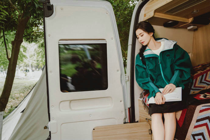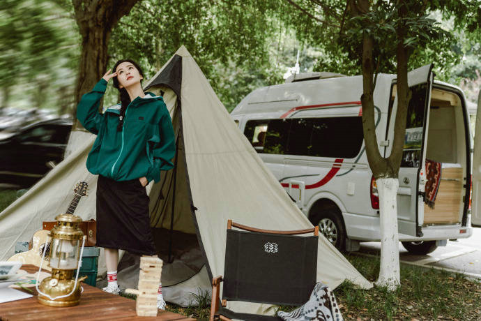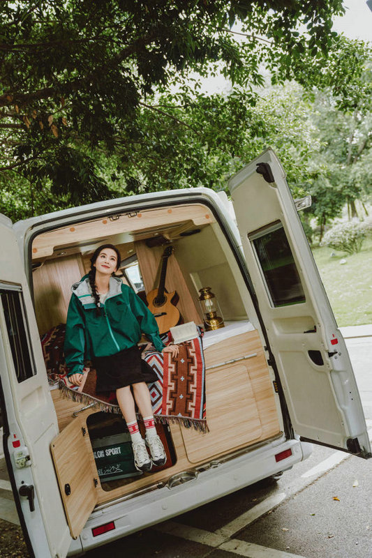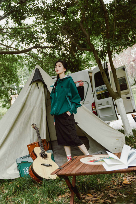 此番,刘诗诗造型主打户外休闲风,可隆新品OBLI-K防水夹克版型正,独具设计感,活动中,她在房车中看向窗外,与自然融洽相处,岁月静好的状态精致又美好。房车外的帐篷将郊外出游的意趣氛围拉到最高,刘诗诗惬意踱步于四周,仿佛正在享受一个轻松愉快的周末,绿色秋装外套尤其适合外出露营,在城市中也能感受一份来自大自然的绿意。