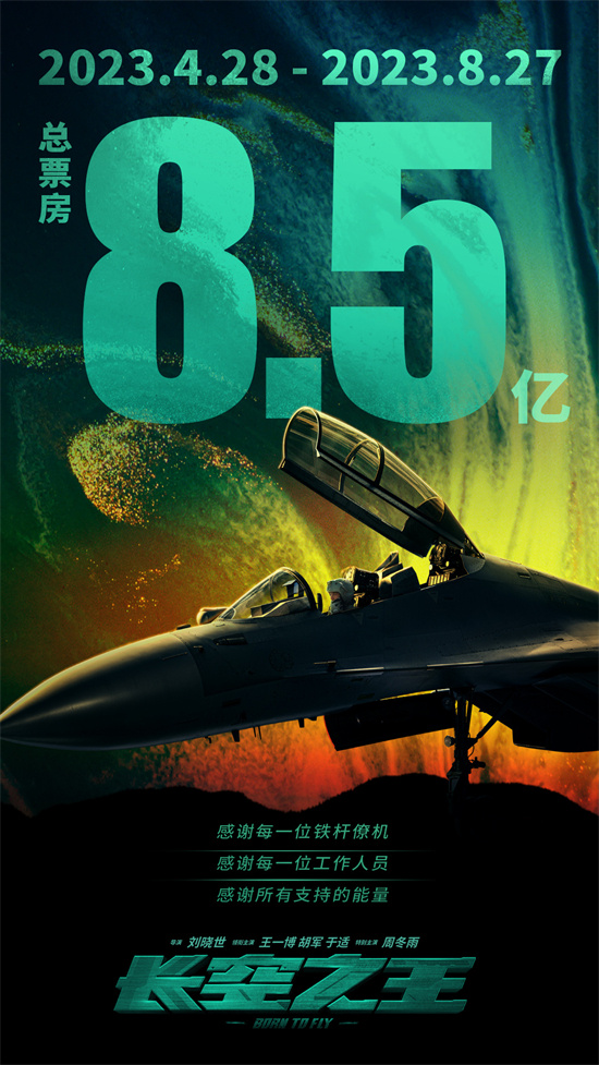8月27日,在经历了三次密钥延期后,五一档电影《长空之王》结束了121天的公映,最终票房定格在8.5亿,观影人次2031.4万,共打破6项影史纪录。官方发文感谢观众的支持:“从4月28日到8月27日,感谢铁杆僚机们121天的‘护航’,电影《长空之王》顺利返航,我们下一片天空再见。”