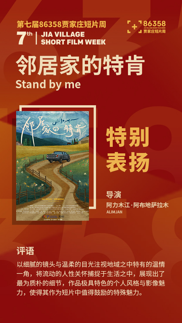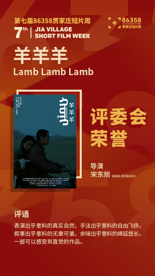 除了最佳影片荣誉,86358贾家庄短片周还设立了评委会荣誉,表彰具有人文关怀、青年文化价值、鲜明风格于杰出视听语言的作品,奖励由著名演员赵涛提供赞助。由宋东旭导演的《羊羊羊》获得评委会荣誉,该片的表演出乎意料的真实自然,手法出乎意料的自由飞扬,叙事出乎意料的无章可循,余味出乎意料的绵延悠长,一部可以感受到直觉的作品。阿力木江·阿布地萨拉木导演的《邻居家的特肯》获得了特别表扬荣誉,这部影片以细腻的镜头与温柔的目光注视地域之中特有的温情一角,将流动的人性关怀捕捉于生活之中,展现出了最为质朴的细节,作品极具特色的个人风格与影像魅力,使得其作为短片中值得鼓励的特殊魅力。