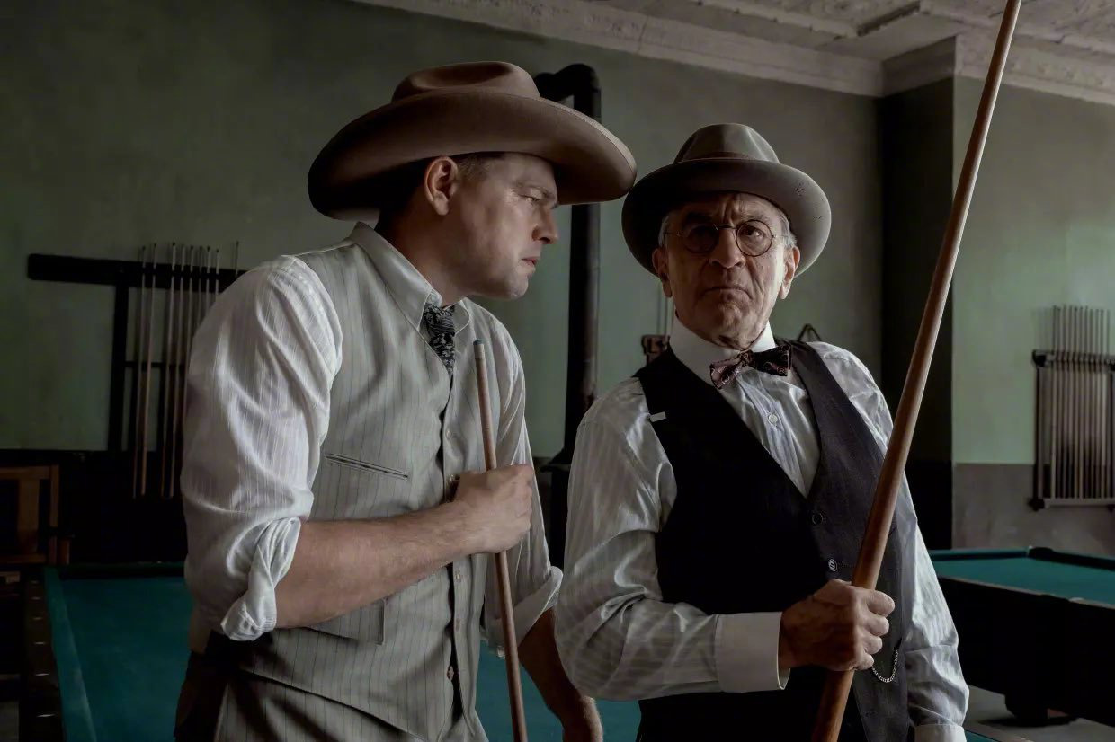 马丁·斯科塞斯全新力作《花月杀手》发布新剧照,两位主角莱昂纳多·迪卡普里奥与罗伯特·德尼罗手持球杆站在球台前神情严肃,德尼罗似乎在酝酿着什么,而莱昂纳多则显得有些进退两难。