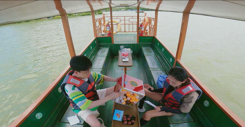 泛舟惠州西湖的“湖上一杯饮”核心大考环节,张睿、海陆,借助十年默契加持,解锁盲盒夹荔枝“开挂”新方法,迅速集齐8颗惠州荔枝,并用海拔6000米的昆仑山矿泉水特调为荔枝饮品。极佳的风味口感再配上优美的“西湖”美景,味觉、视觉双重刺激让张睿大呼过瘾,海陆则一饮而尽,尽显飒爽女汉子性格。
