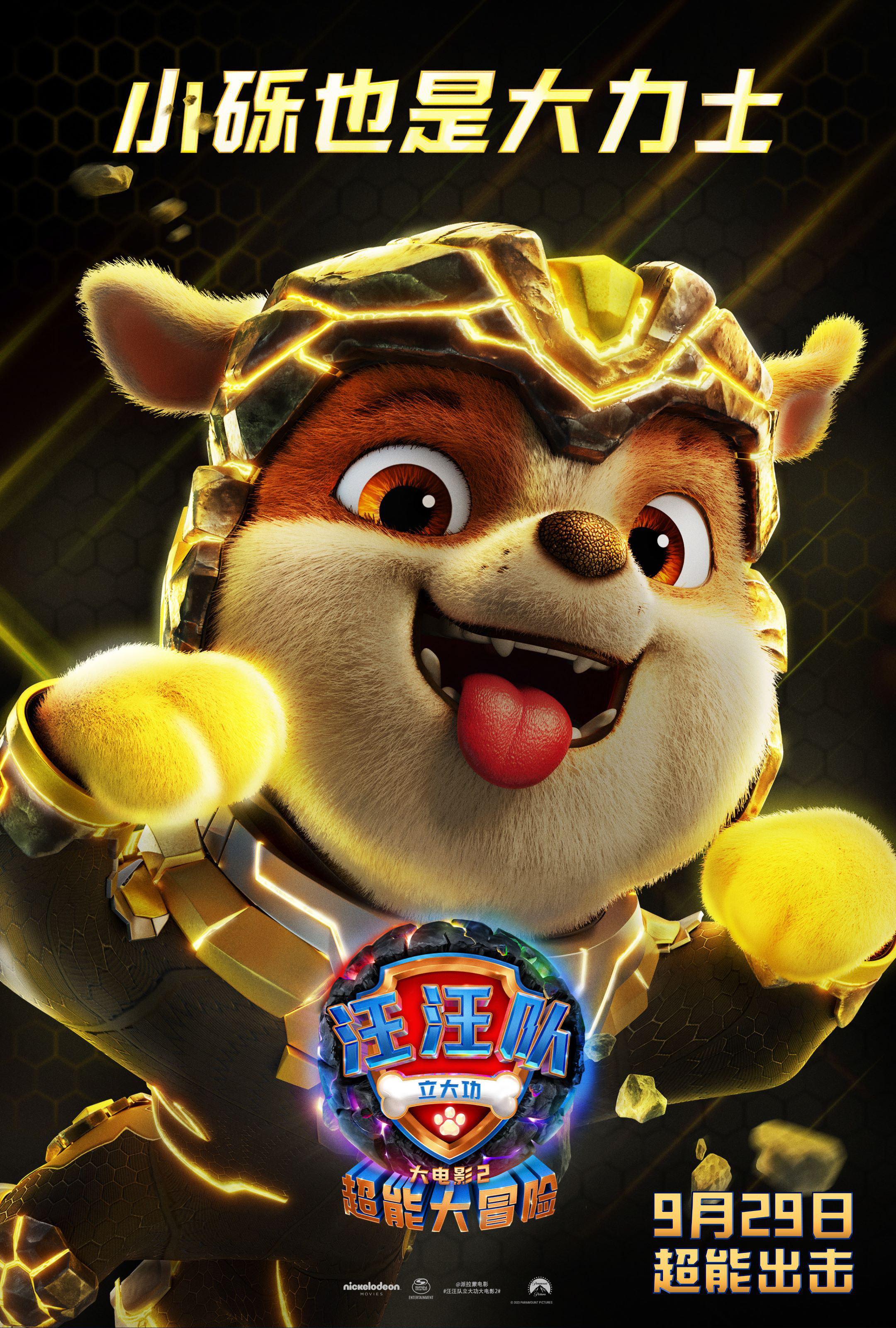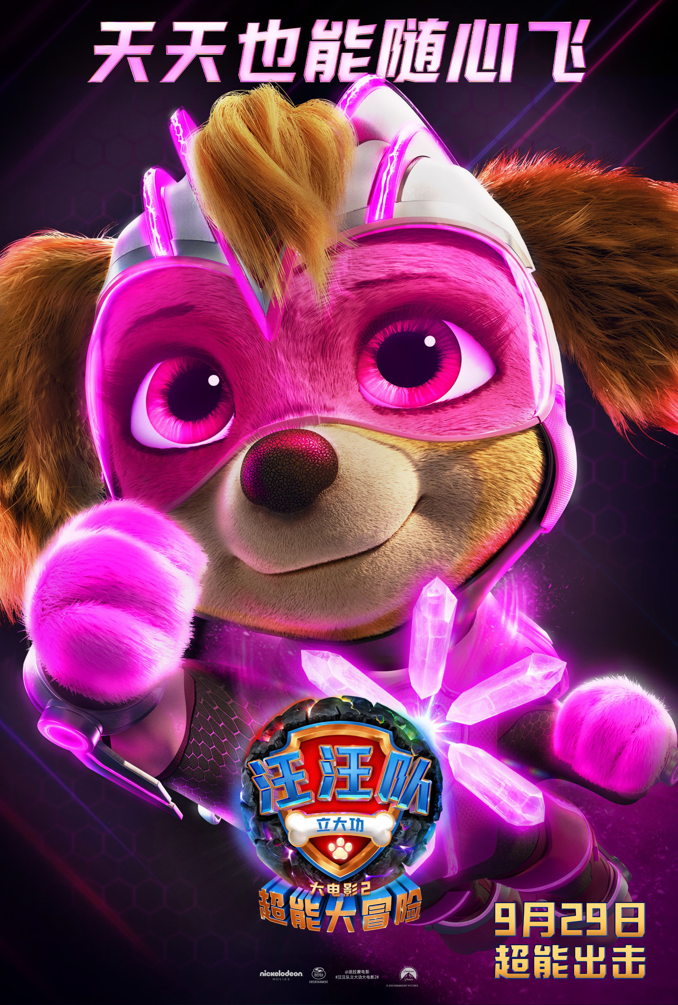《汪汪队立大功》系列一经推出就受到世界各地家长与孩子的热烈欢迎,一举成为风靡全球的亲子动画IP。“没有困难的工作,只有勇敢的狗狗”,这句熟悉的口号不仅成为了孩子们的口头禅,更成为了火遍社交网络的热梗。此次《汪汪队立大功大电影2:超能大冒险》定档9月29日,也吸引了很多亲子观众的关注,纷纷在社交媒体留言表示期待!此外,片中汪汪队获得超能力的设定和制作精良的画面也吸引了很多年轻人入坑,纷纷惊叹“现在小朋友看的动画片制作水准都这么高了吗?”相信这群真诚勇敢的小狗狗们能够让每一位观众都收获一个圆满快乐的小长假!