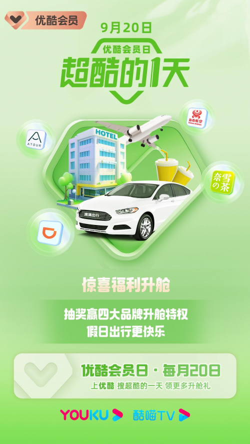 福利升舱,宠爱多多!快上优酷搜索“超酷的一天”,即刻解锁专属于九月的升舱好福利吧!
