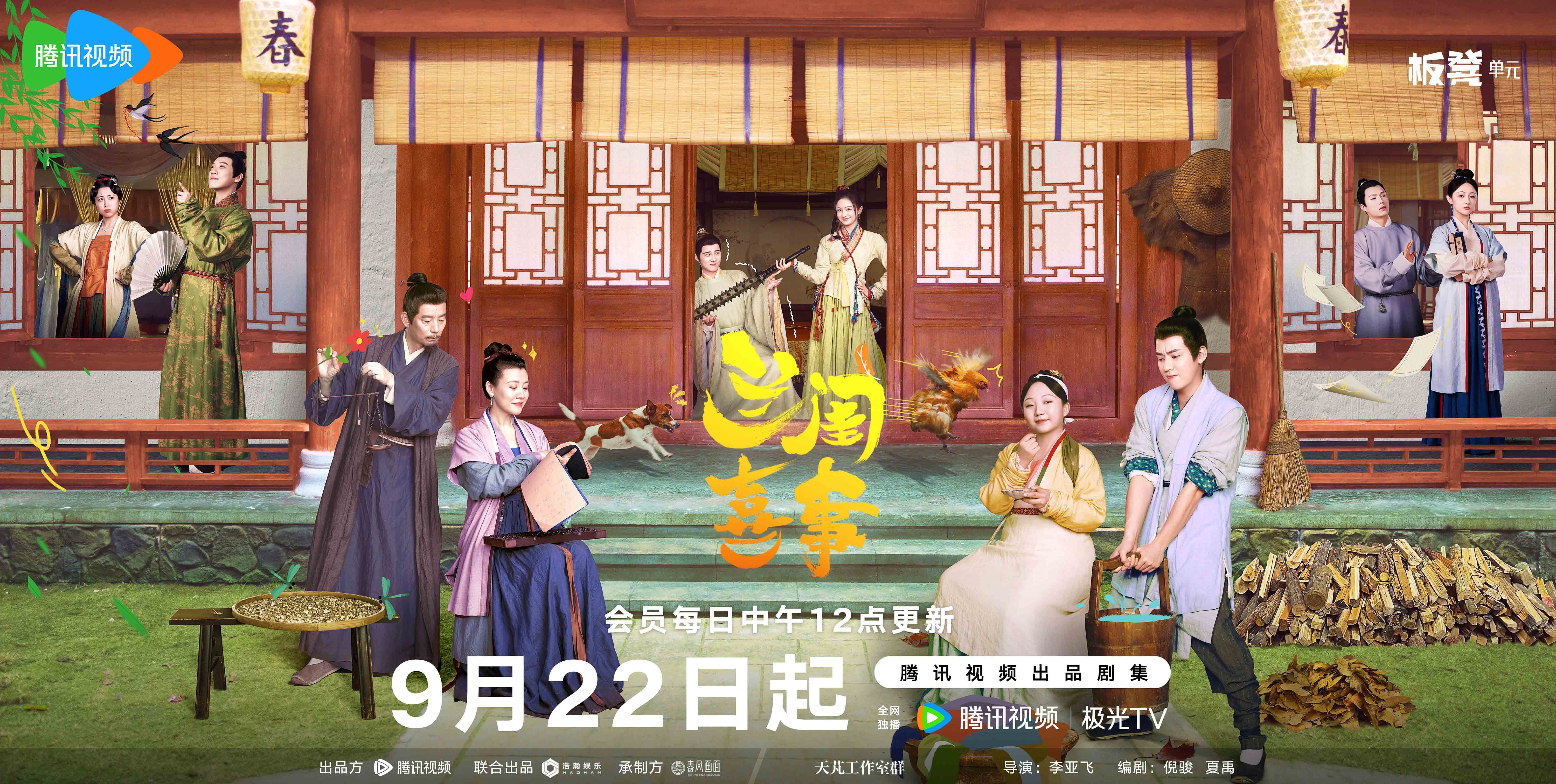 由腾讯视频、浩瀚娱乐出品,春风画面承制,孙忠怀、刘韬担任出品人,方芳、张健担任总制片人,张志炜、弓旭、美英担任制片人,李亚飞执导,夏禹、倪骏编剧的古装合家欢家庭喜剧《兰闺喜事》今日官宣定档,将于9月22日在腾讯视频独家播出。该剧由刘琳、李嘉琦、杨皓宇、任豪领衔主演,吴佳怡、古子成特别主演,韩云云、昌隆、厉嘉琪、向夏主演,讲述了守寡18年的杜如玉顶着巨大的经济压力在江临置宅,以期让四个女儿春锦荣、春佩兰、春半夏、春可灵都能嫁入“门(非)当(富)户(即)对(贵)”的人家,却不想歪打正着地促成了几段事与愿违的姻缘。