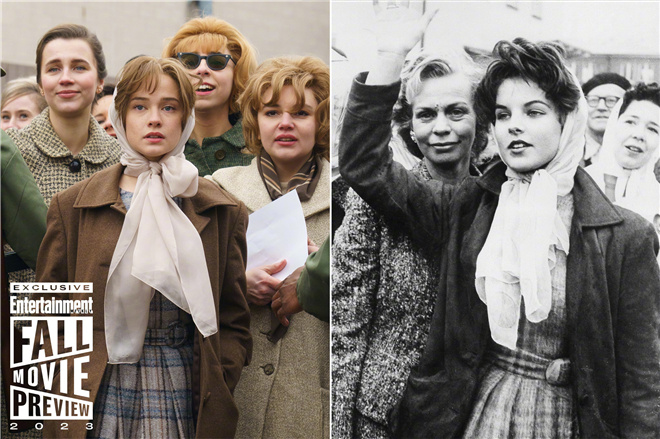 近日,由索菲亚·科波拉导演的新片《普瑞希拉》发布了全新的剧照。这些剧照和真实的照片两两对比,从对比中不难发现,剧照对于历史做出了几乎是一比一的还原,从角色的装扮到布景的细节。由此也不难看出,这将会是一部相当写实的影片。