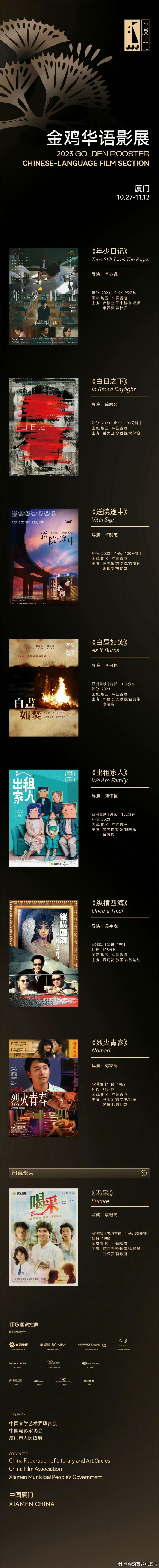 近日,2023年中国金鸡百花电影节公布金鸡华语影展片单,这些展映影片涵盖了剧情、奇幻、喜剧、犯罪、恐怖、悬疑和爱情等多种类型,而且不少出自青年导演之手,充分展现出华语电影新力量的无限可能。