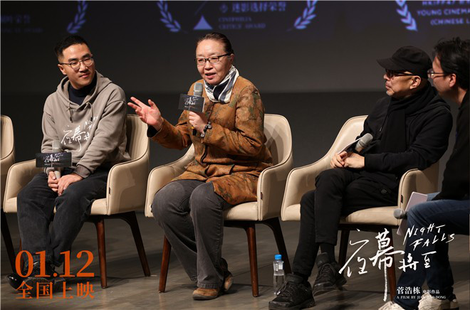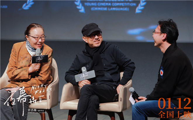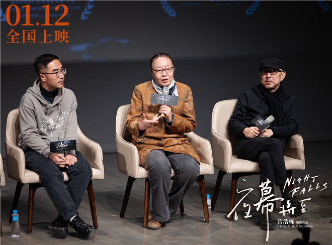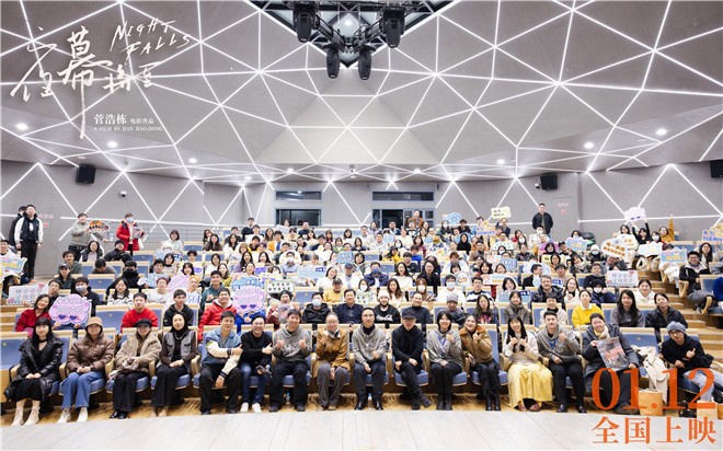 1月6日,电影《夜幕将至》在北京大学百周年纪念讲堂举行首映礼,影片导演兼编剧菅浩栋携主演梁戟、佐菲,制片人郝叶子等主创亮相,与观众互动交流。