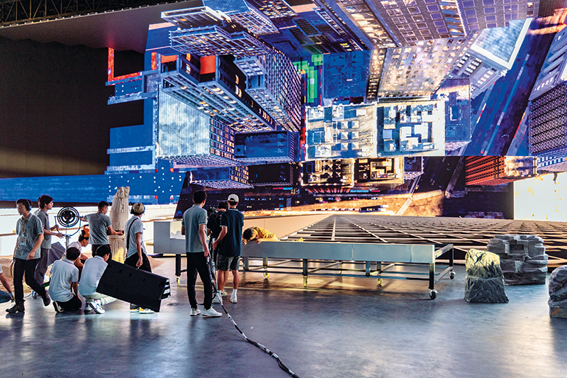 在中国影视科技创新成果展上,参展企业展示LED虚拟拍摄系统(2023年5月5日摄) 黄伟摄/本刊