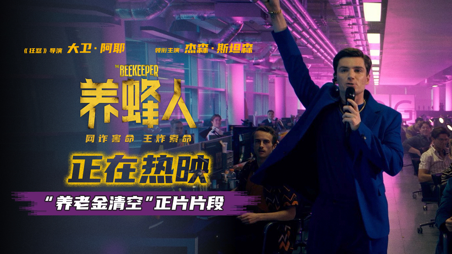 由大卫·阿耶执导,科特·维莫编剧,杰森·斯坦森、乔什·哈切森主演的犯罪动作电影《养蜂人》正在全球同步热映中。官方发布了“养老金清空”正片片段,释出房东帕克太太遭遇网络诈骗的相关情节。该片讲述了特工克莱(杰森·斯坦森 饰)隐退后当起了养蜂人,因房东太太帕克遭受网络诈骗自杀身亡而重出江湖为其复仇,直至团灭整个诈骗集团的故事。影片上映后国内外多平台已经开分,猫眼开分9.0,淘票票开分8.9,烂番茄开分新鲜度72%,爆米花指数92%,IMDb评分6.7,获国内同档期已开分新片最高评分,影片的燃爽气质激发了观众的观影热情。