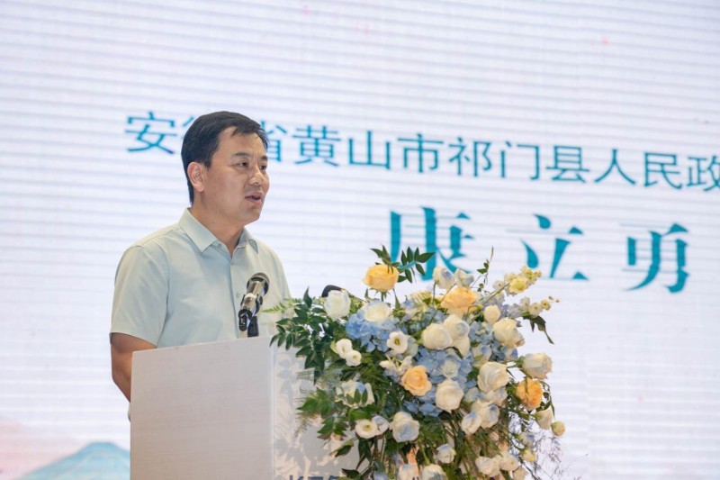 祁门县人民政府副县长康立勇在致辞中向与会的各地代表介绍,提及祁门,许多人会先想起一杯醇厚的祁门红茶,作为“世界三大高香红茶”之一,祁门红茶从1875年诞生至今,以独特的“祁门香”征服世界,曾作为国礼见证中外友谊,如今更是承载着祁门的味道走向全球。但祁门的魅力,远不止于一杯茶。祁门地处神奇的北纬30度,是安徽向南开放的“门户”,更是徽州文化与生态山水交融共生的“秘境”。