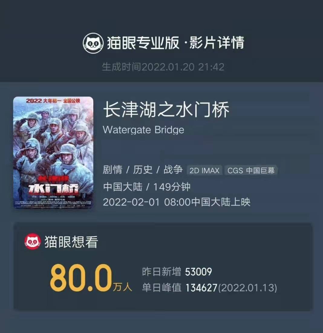 影片昨日公布了时长为149分钟,是春节档8部影片中时长最长的影片,在猫眼平台的春节档想看人数中排名第1。