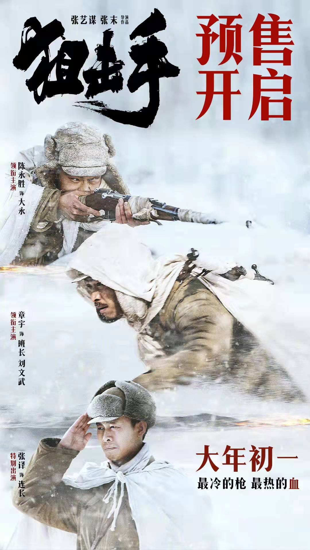 和《长津湖之水门桥》的海报相比,《狙击手》开启预售的海报是肃静的雪地,张译、章宇以及陈永胜饰演的战士出现在海报上,表情紧张严肃。