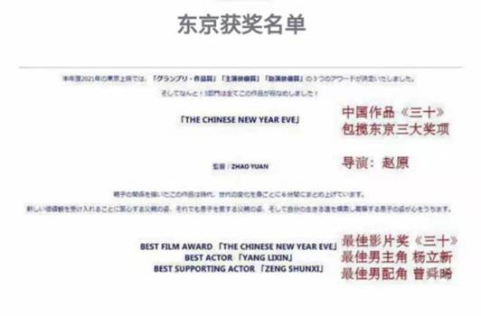 (导语:受疫情影响,2021日本新宿世界电影节经历茨城、长野、东京三个城市的巡回展映后,终于在近日落下帷幕,而来自中国的电影短片《三十》和《妈妈我能看见你》在本次国际电影节中脱颖而出。其中由中国青年电影导演赵原执导的影片《三十》包揽了电影节的最佳影片、最佳男主角和最佳男配角三项大奖,成为本次新宿世界电影节中国电影人的高光时刻及让人难忘的瞬间。)