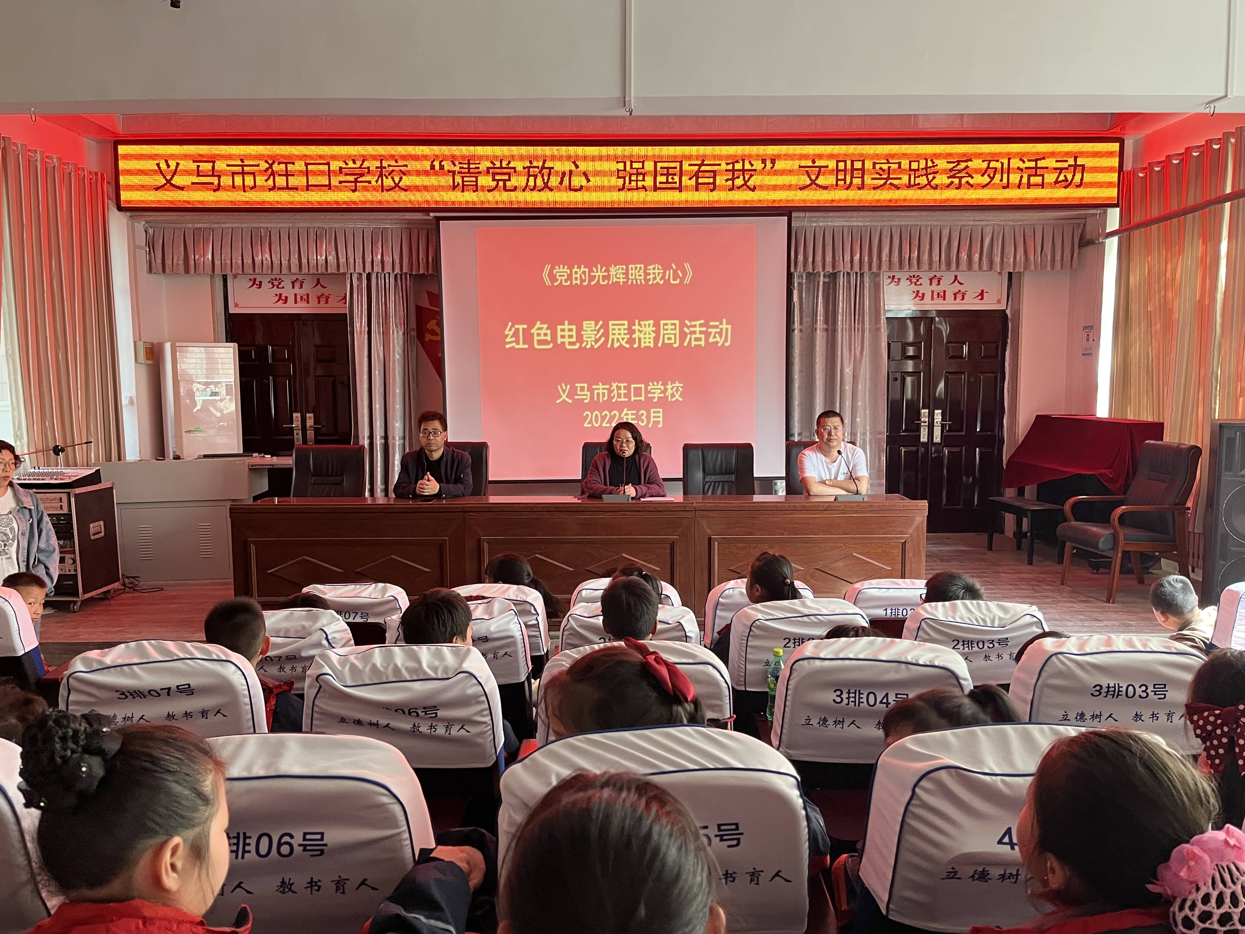 阳春三月,生机盎然,万象更新,义马市狂口学校于2022年3月11日下午在阶梯教室举行了《党的光辉照我心》红色电影展播周活动,共有近两百名小学生观看了影片。