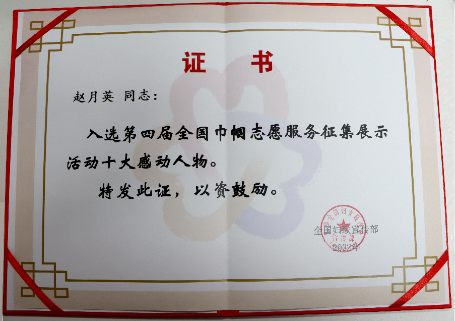 海南省赵月英同志入选“第四届全国巾帼志愿服务征集展示活动十大感动人物”。