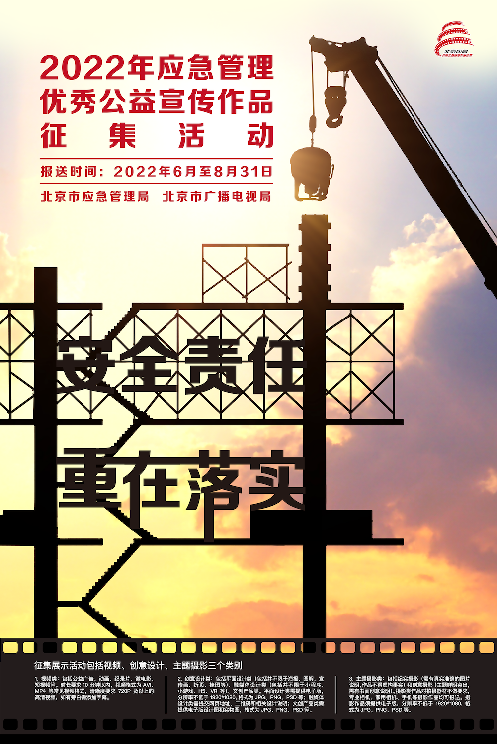 近日,由北京市应急管理局、北京市广播电视局联合开展的,以“安全责任 重在落实”为主题的“2022年应急管理优秀公益宣传作品征集展示活动”正式启动。