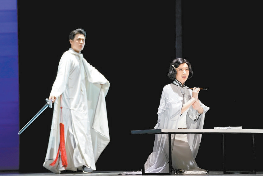 舞台上高君宇(左)的慷慨激昂和石评梅(右)的生死相随,都让观众动容。